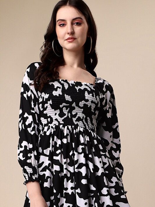 Elegant Gold Printed Black Fit and Flare Maxi Dress
